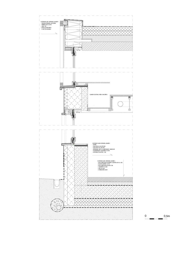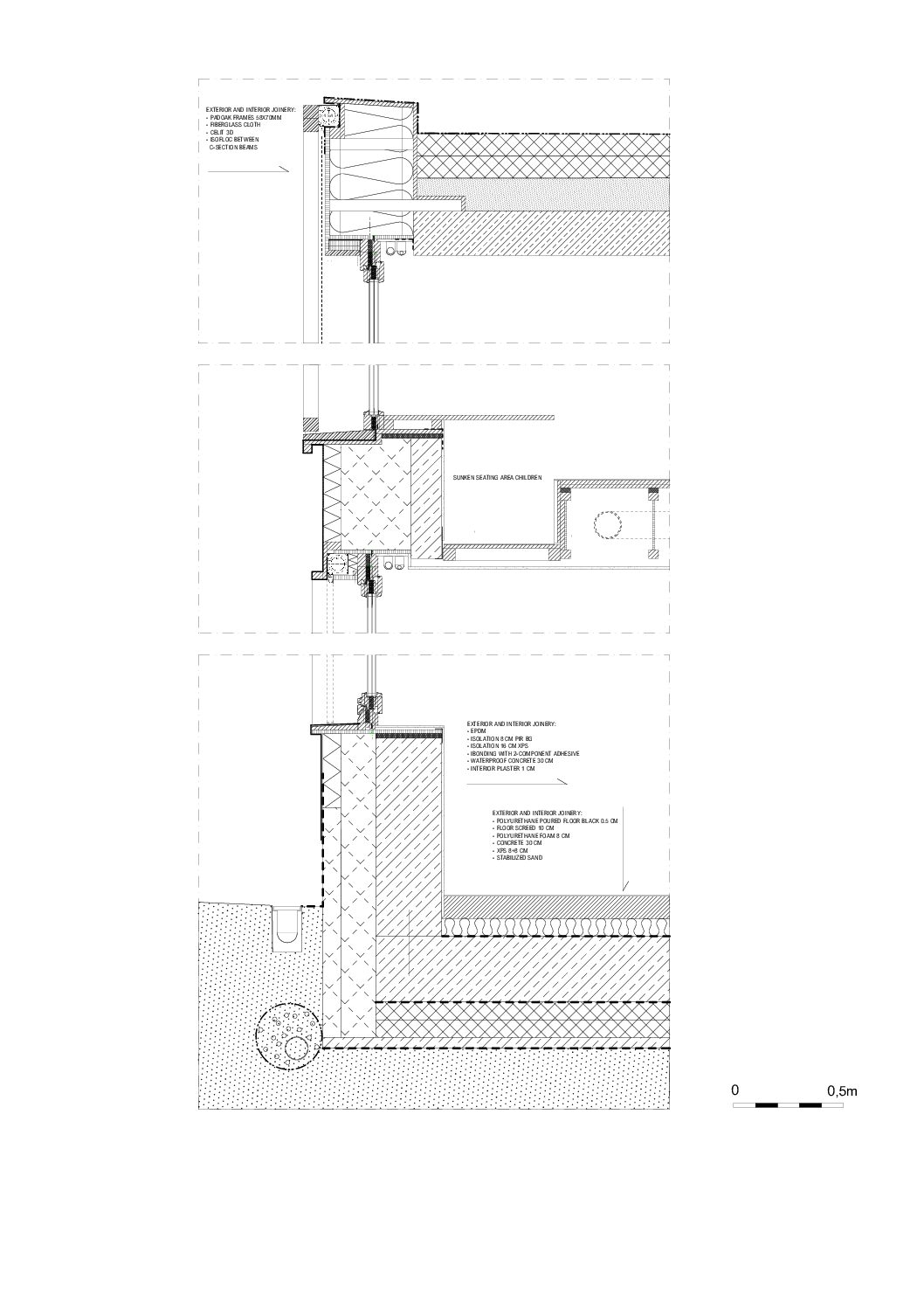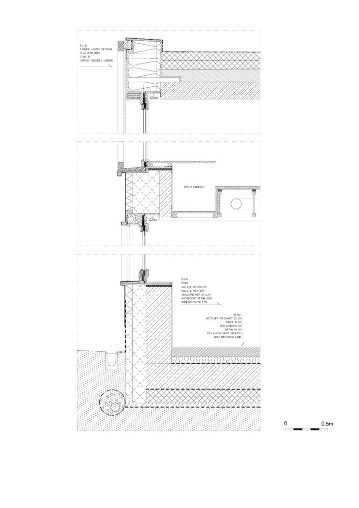 gelijkvloers: beton muren en platen, ter plaatse gestort met XPS isolatie en EPDM rubberen bekleding