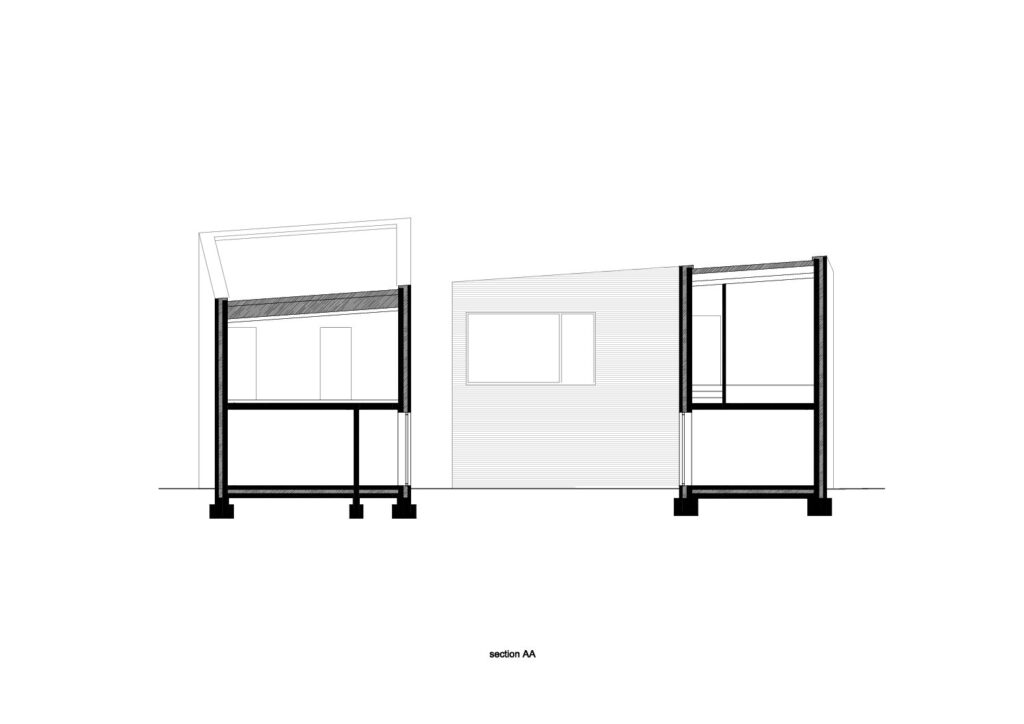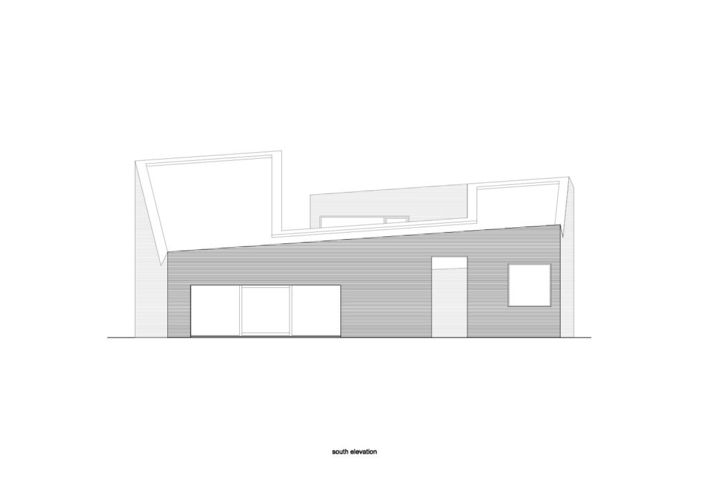 ENERGETISCH: de perceelsverdeling verloopt niet in rechte lijn. Enerzijds ontstaan hierdoor bredere en meer private tuinen (linker woning voortuin en zuidgericht, rechter woning achteraan en gericht op de weidse zichten), anderzijds wordt meer zuidgevel gecreëerd waardoor er passieve zonnewinsten kunnen ontstaan. Meer zuidgevel wordt naast de perceelsverdeling ook mogelijk gemaakt door de lagere bouwhoogte vooraan en door de patio.