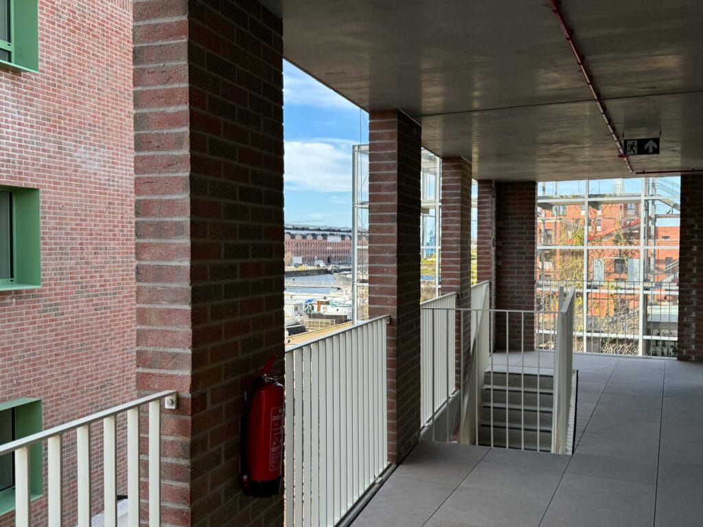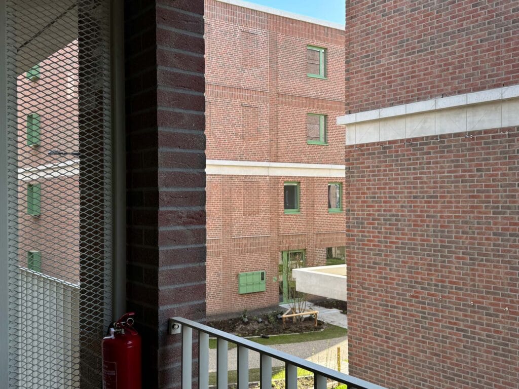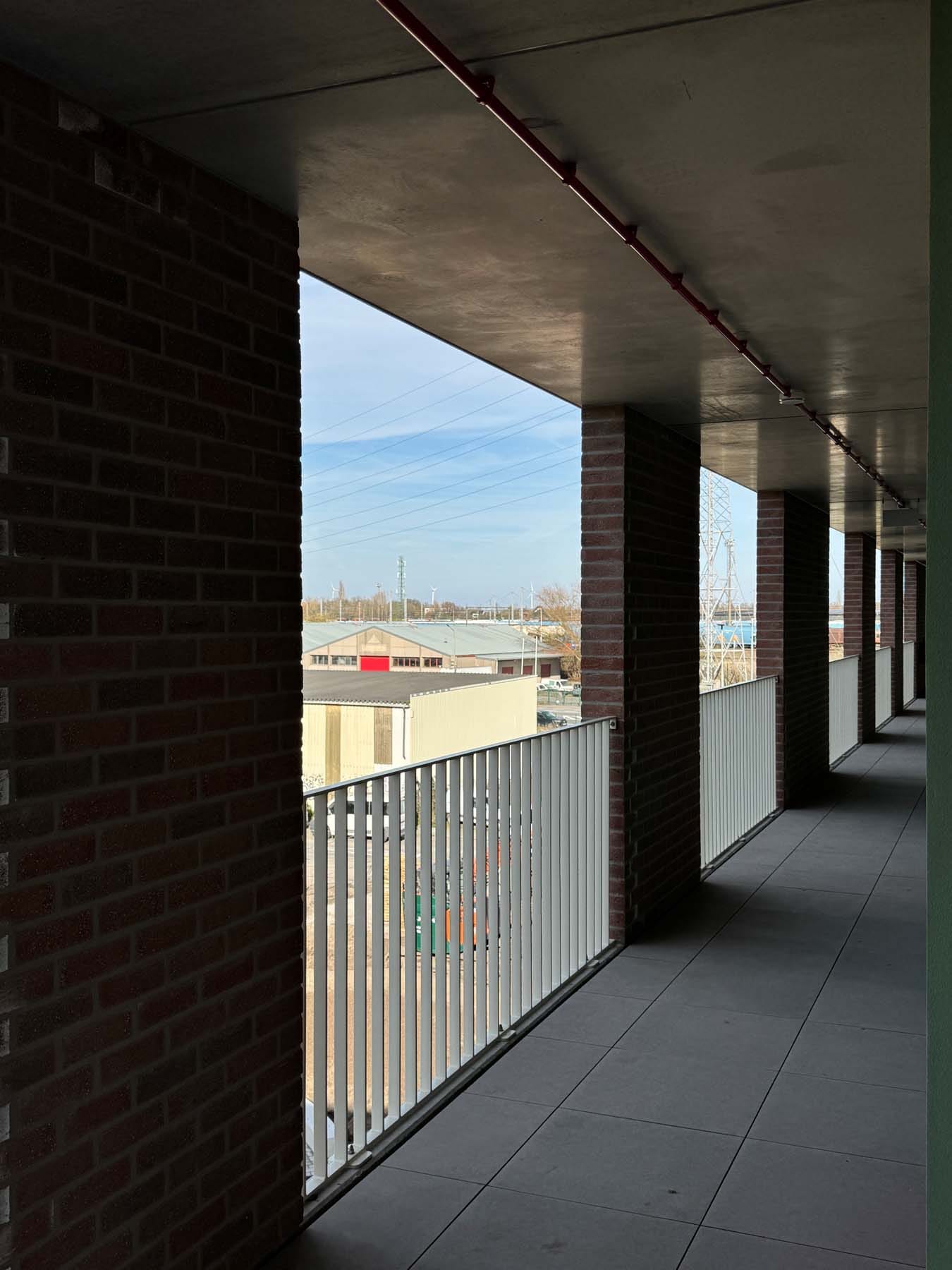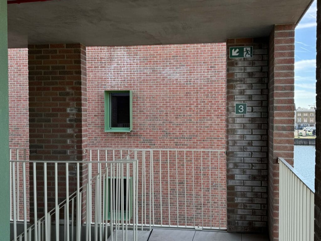 Op deze manier wordt een gebouw gemaakt dat op een heel eenvoudige manier past in de omgeving, dat tegelijk ook voldoende geborgenheid geeft aan de bewoners van de appartementen op de gaanderij.