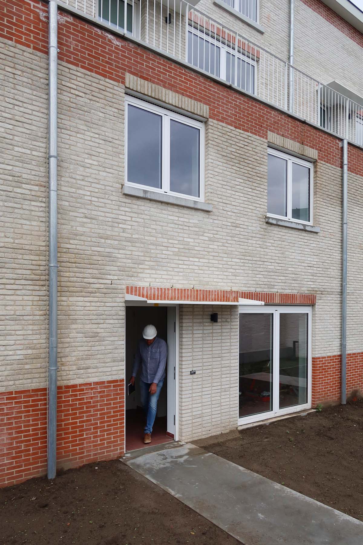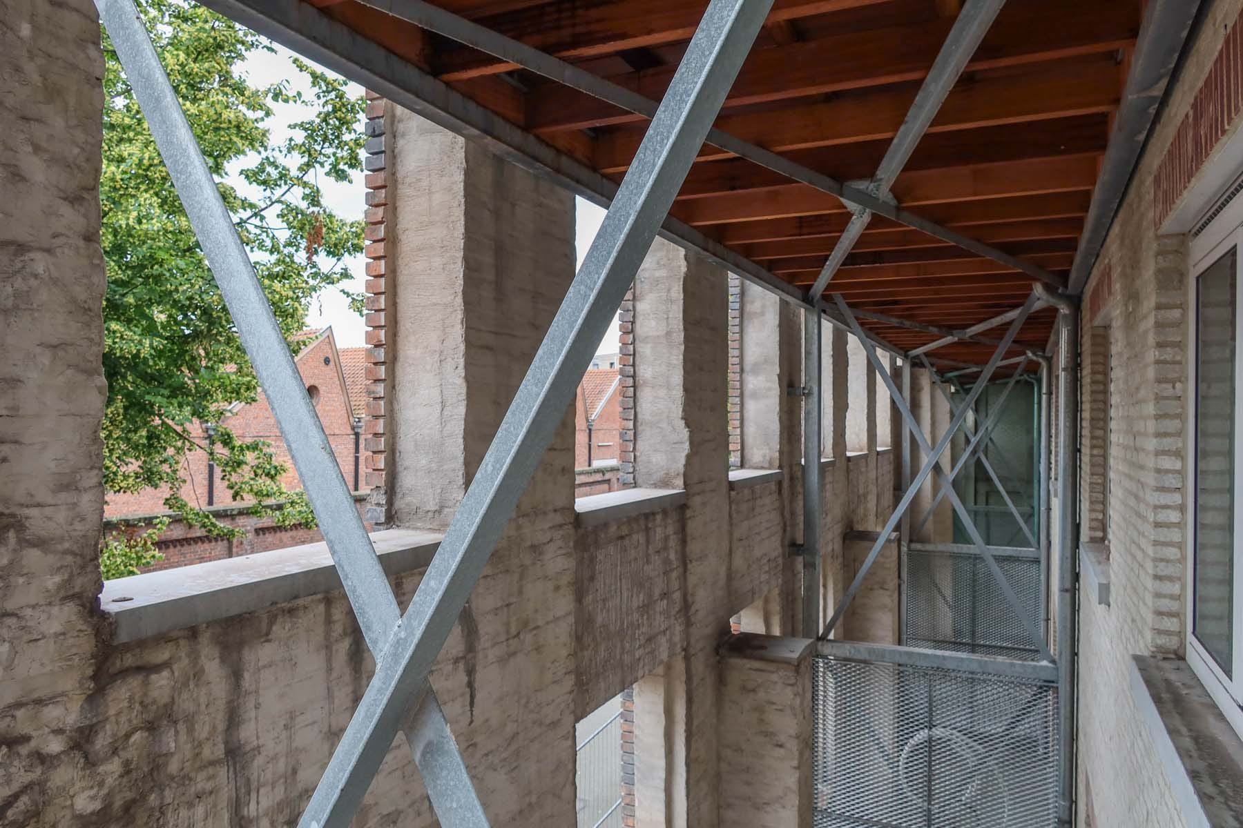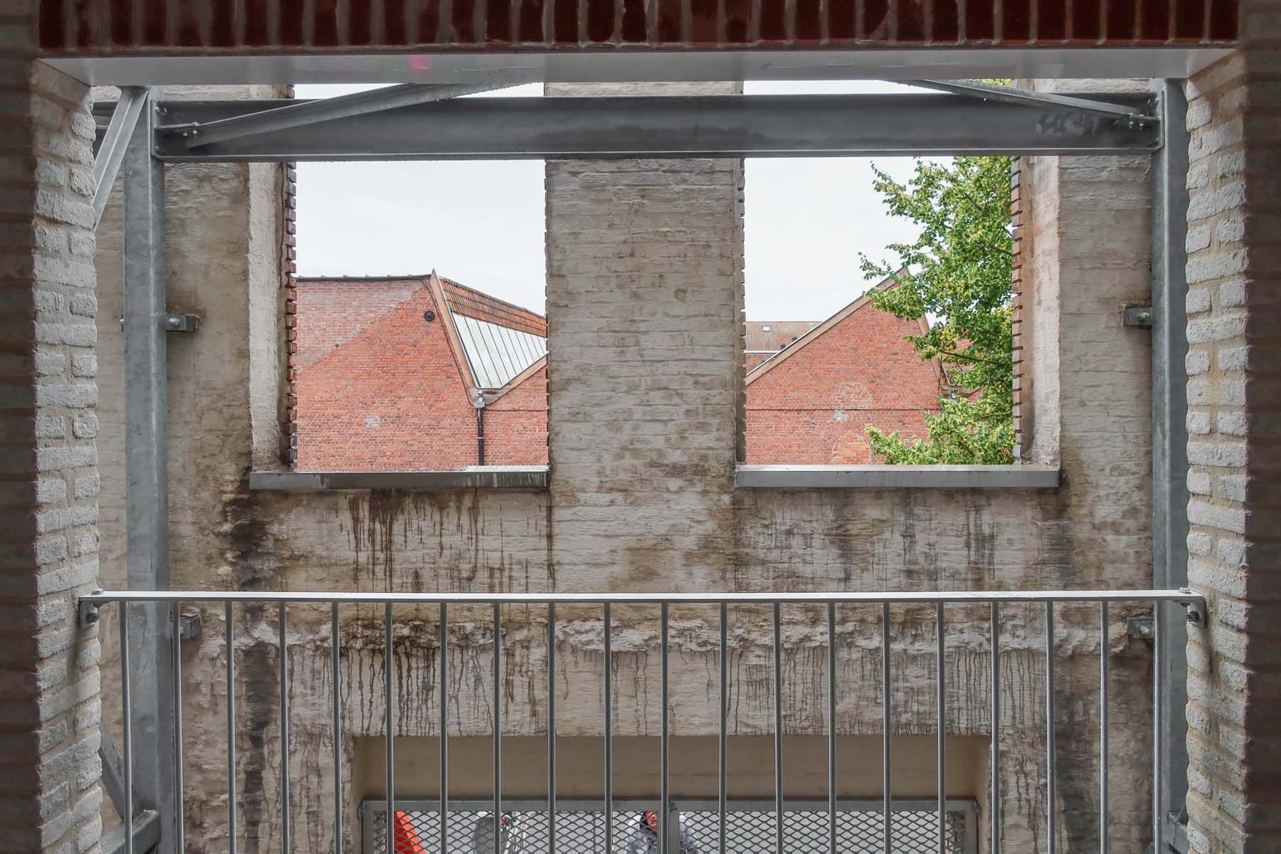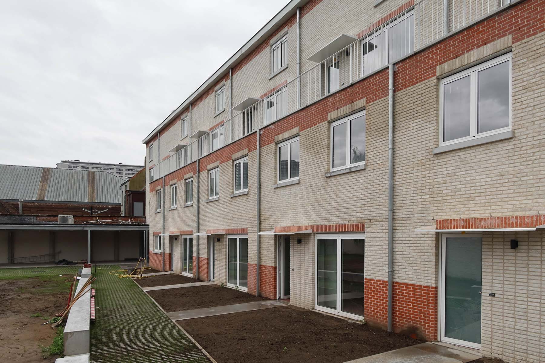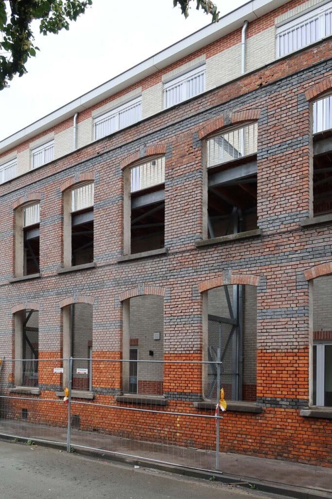 De bestaande straatgevel is een zeer robuuste constructie opgetrokken in dubbelsteens metselwerk met achterliggende steunberen. De structurele integriteit van deze muur kan daardoor makkelijk gegarandeerd blijven. We behouden “enkel” de straatgevel en geen overige gebouwen of gebouwdelen, omdat we in de context van sociale woningbouw prioriteit geven aan de kostenbeheersing. We hebben ons dus niet laten verleiden tot een complexere of omvangrijkere renovatie of integratie van bestaande elementen, omdat de kostenbeheersing dan eenvoudigweg niet kan gegarandeerd worden.