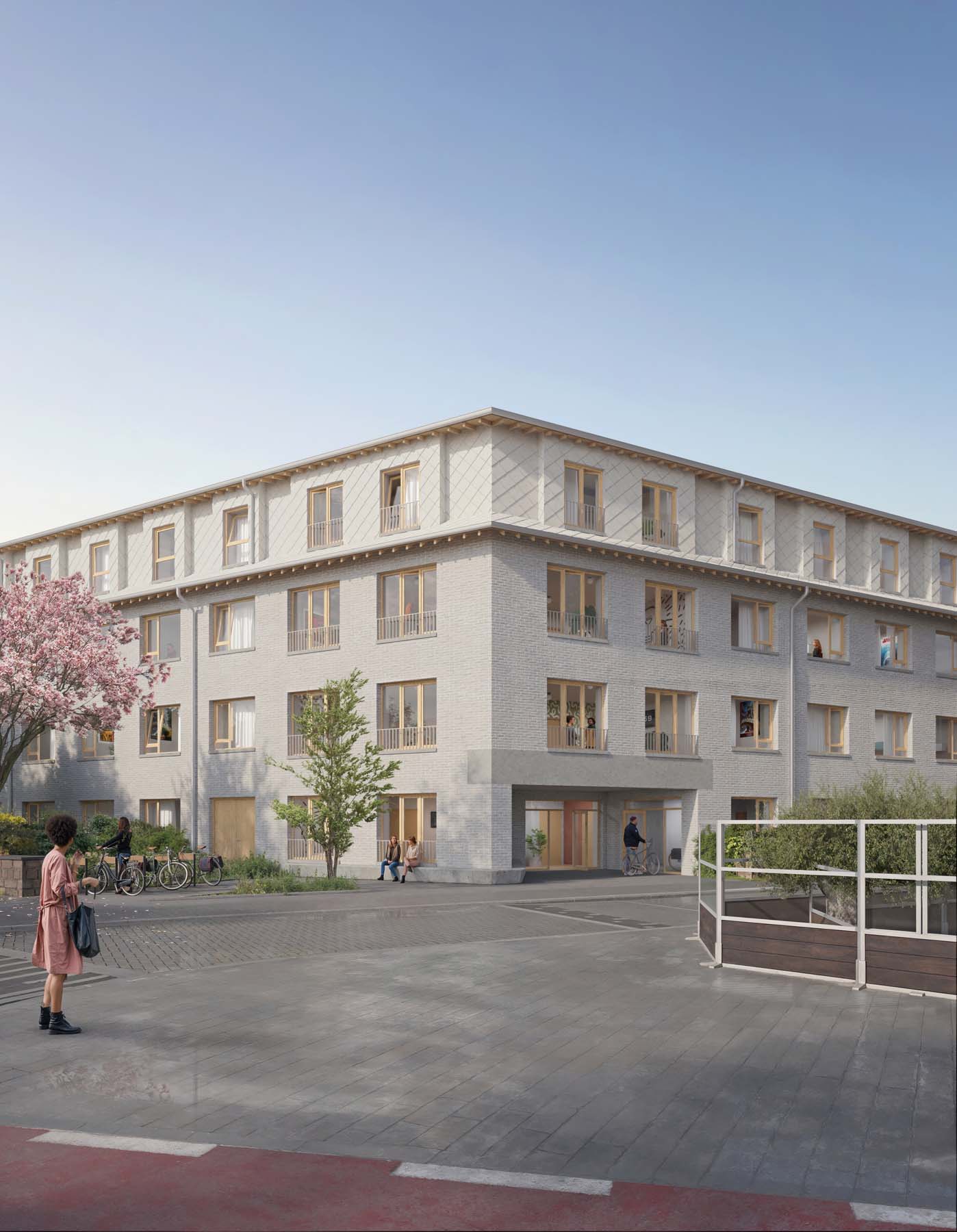 - De collectieve leefkeukens zijn gepositioneerd aan de straatgevels van het gebouw, ter hoogte van de hoek Jockeystraat – Oudenaardsesteenweg, en niet aan de tuingevels. Op die manier behoudt de tuinzijde haar rustig en residentieel karakter, en de straatzijde haar levendig karakter.
