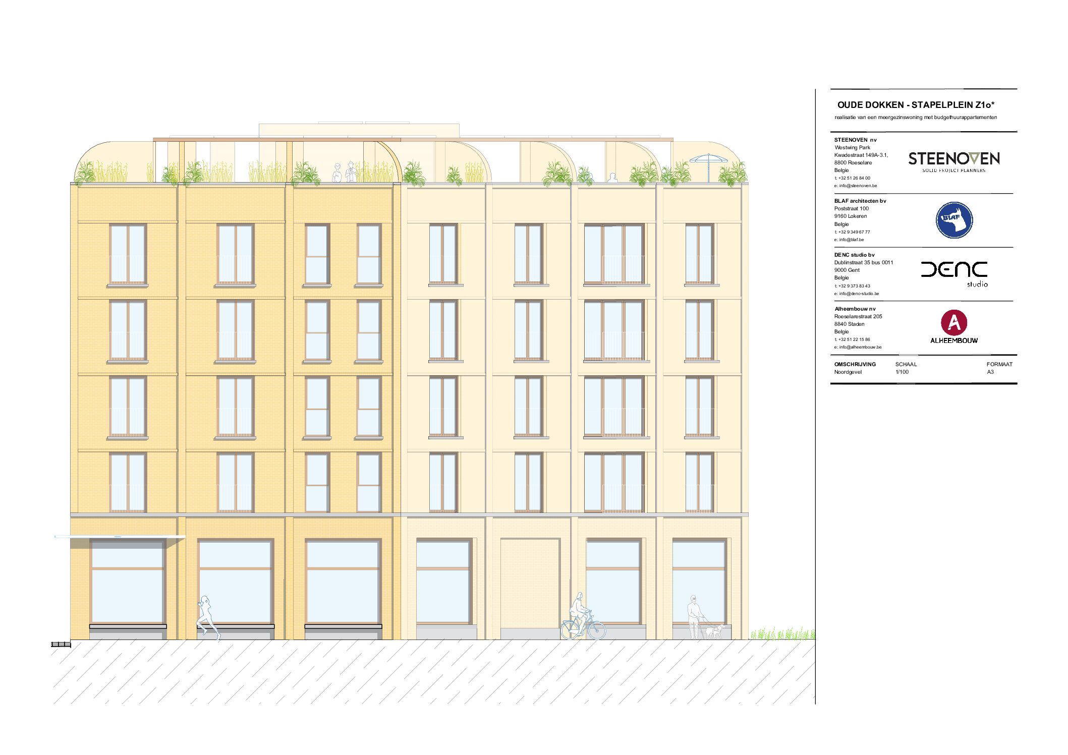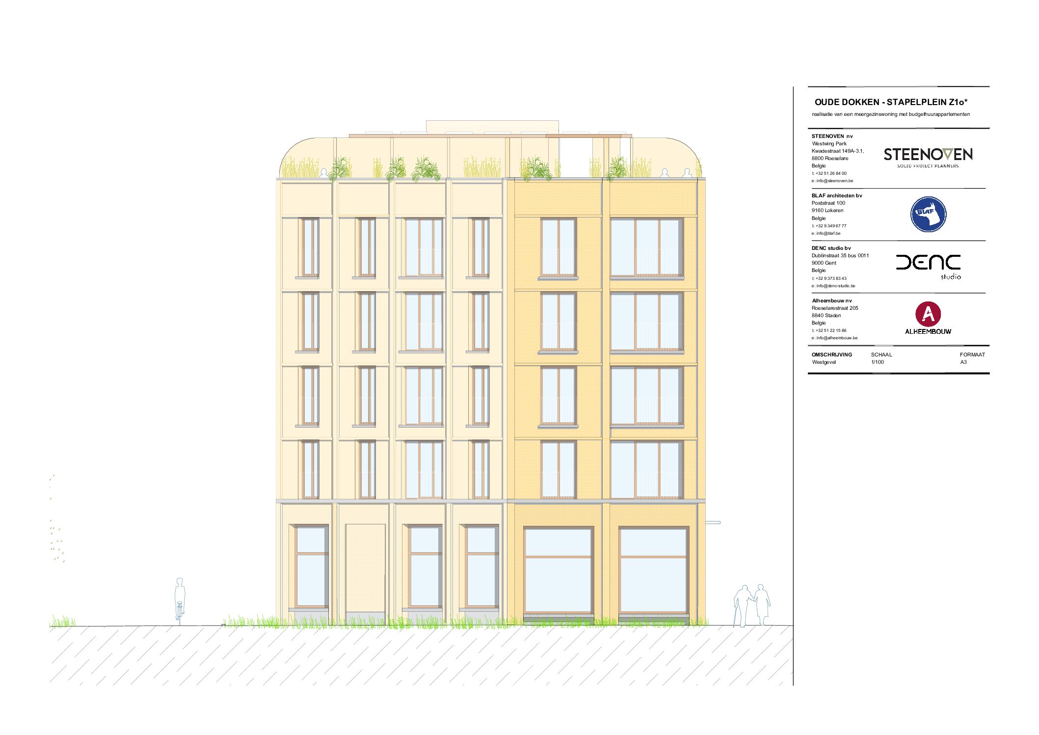 Aan het Stapelplein in de Oude Dokken van Gent wordt een compact en stedelijk woongebouw met budgethuurappartementen gerealiseerd. Het project maakt deel uit van de herontwikkeling van de kaaizone en sluit aan bij het masterplan voor de site, met aandacht voor betaalbaar wonen, collectiviteit en duurzame stadsontwikkeling.